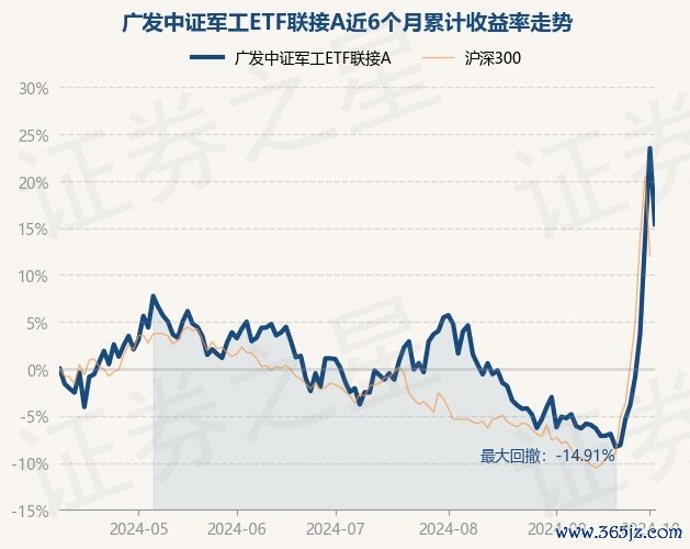本站音讯,10月9日,广发中证军工ETF联贯A最新单元净值为0.9912元,累计净值为0.9912元,较前一走动日着落6.54%。历史数据清晰该基金近1个月高涨23.21%,近3个月高涨18.34%,近6个月高涨15.4%,近1年高涨0.4%。该基金近6个月的累计收益率走势如下图:
