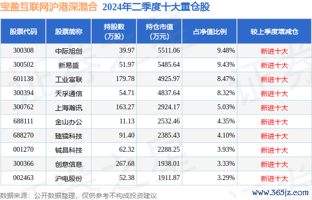宝盈互联网沪港深混杂为混杂型-活泼基金,凭证最新一期基金季报泄露,该基金财富建树:股票占净值比86.51%,无债券类财富,现款占净值比13.65%。基金十大重仓股如下: