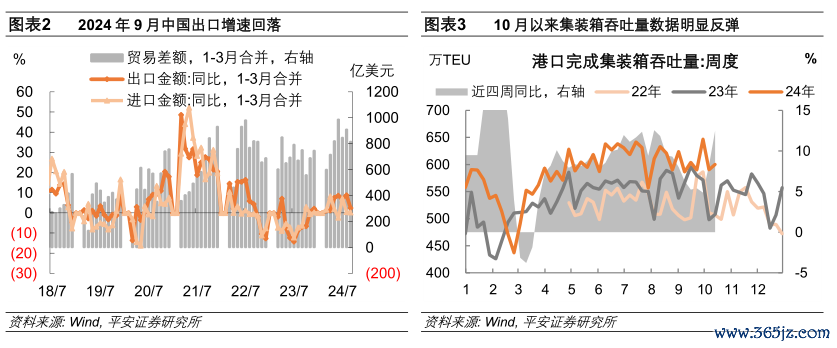 这与咱们从高频数据不雅察到的9月口岸集装箱吞吐量同比增速回落相符,从10月以来该筹商增速的显耀回升来看,对9月出口增速放缓毋庸过于担忧,更需关爱的是好意思国总统大选繁衍的对华外贸计谋风险。
