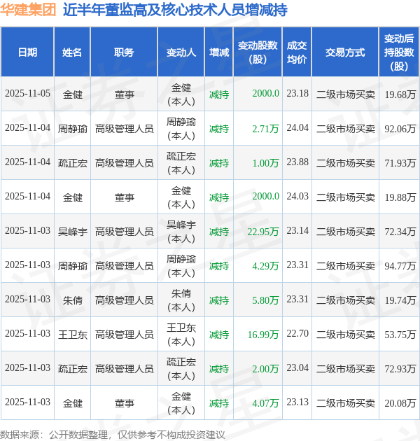 华建集团近半年内的董监高及中枢技能东说念主员增减捏细目如下: